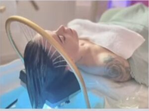 TÊTE: soin lavant, accessoires et cascade d’eau et massage crânien